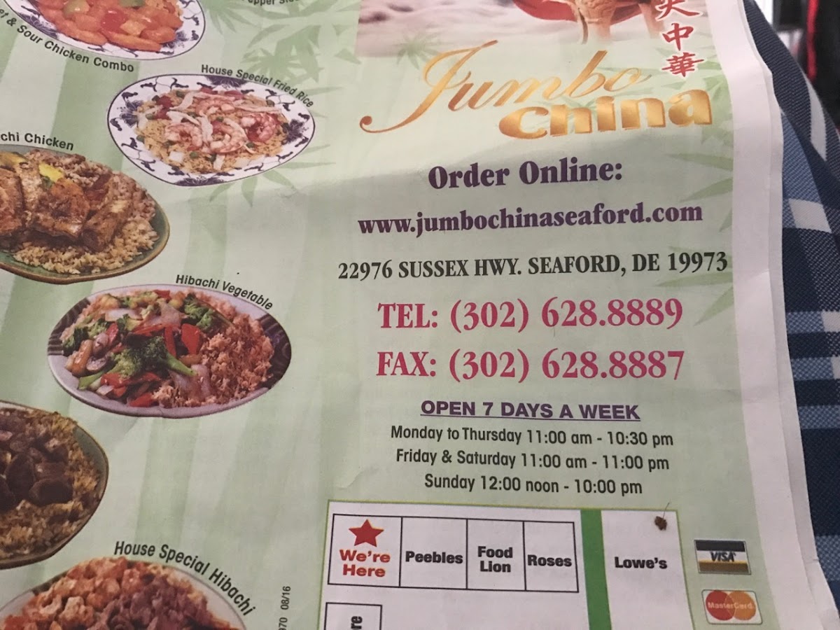 Welcome to Jumbo China, a culinary gem nestled at 22976 Sussex Hwy, Seaford, DE. This local favorite is quickly becoming the go-to destination for authentic Chinese cuisine, as highlighted by numerous enthusiastic customer reviews. Many patrons praise the freshness and flavor of the dishes, with one excited diner proclaiming it to be the "best Chinese food" they’ve ever had.